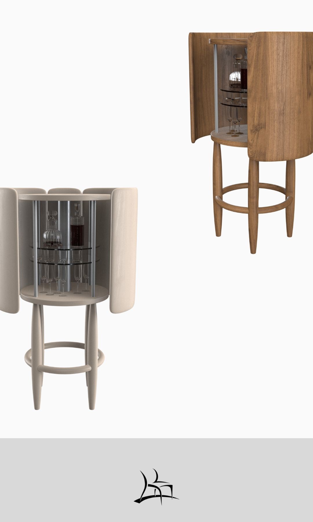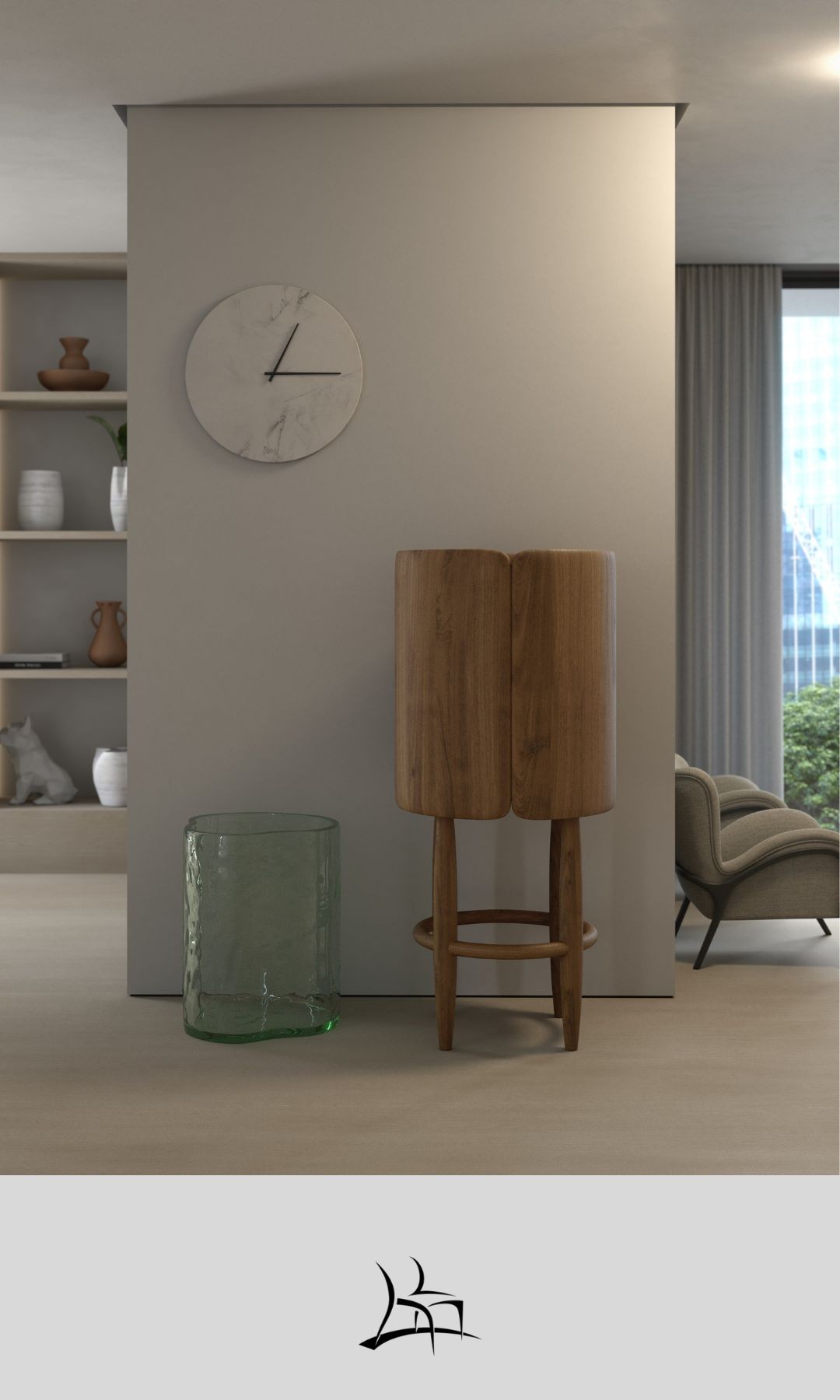 A adega Sips personifica a elegância, destacando-se por seus acabamentos precisos e pela sofisticação da madeira maciça utilizada nas prateleiras destinadas a taças, vinhos finos e destilados de alta qualidade.