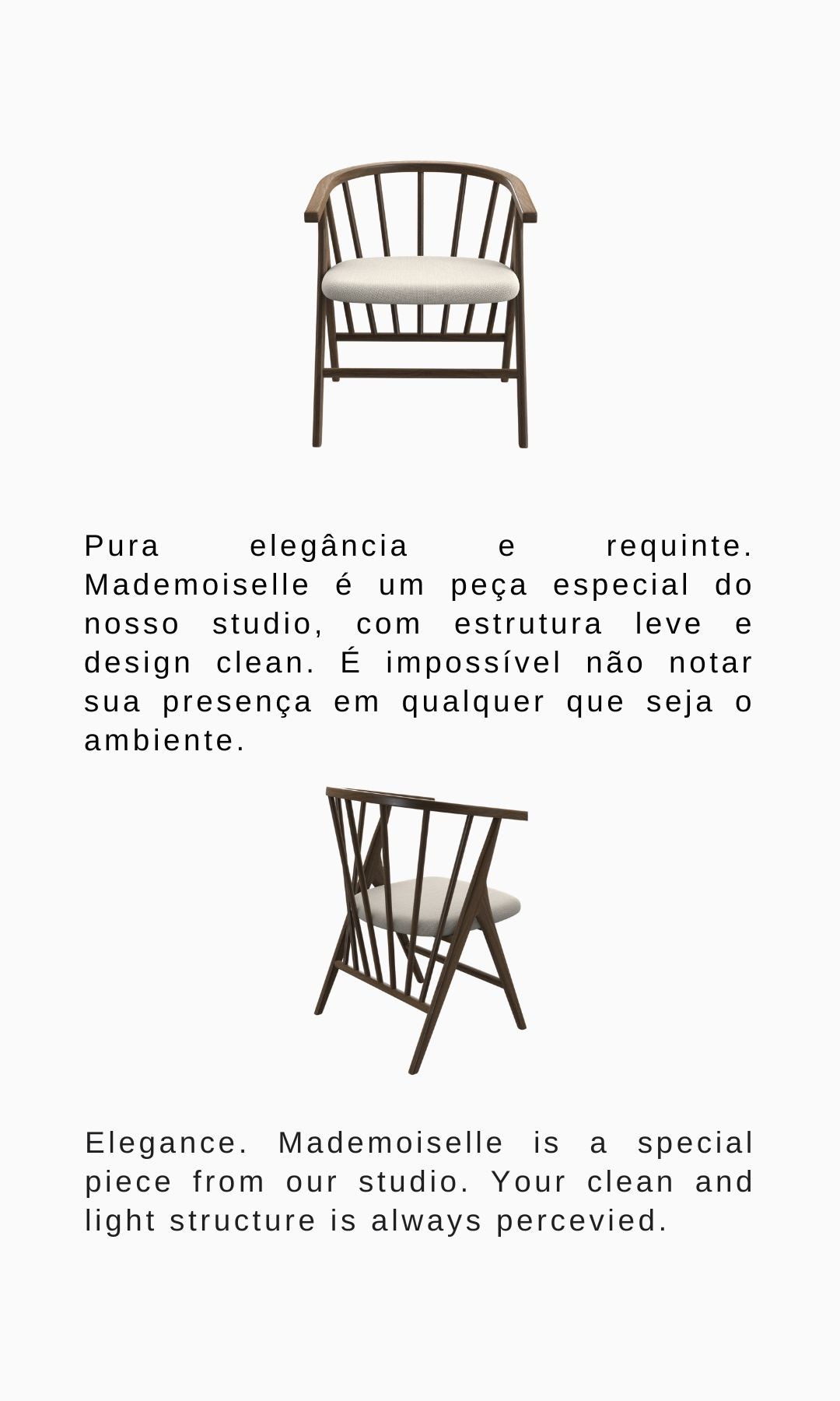 Elegância. Mademoiselle é uma peça especial do nosso ateliê. Sua estrutura limpa e leve é sempre percebida. Elegance. Mademoiselle is a special piece from our studio. Your clean and light structure is always percevied.