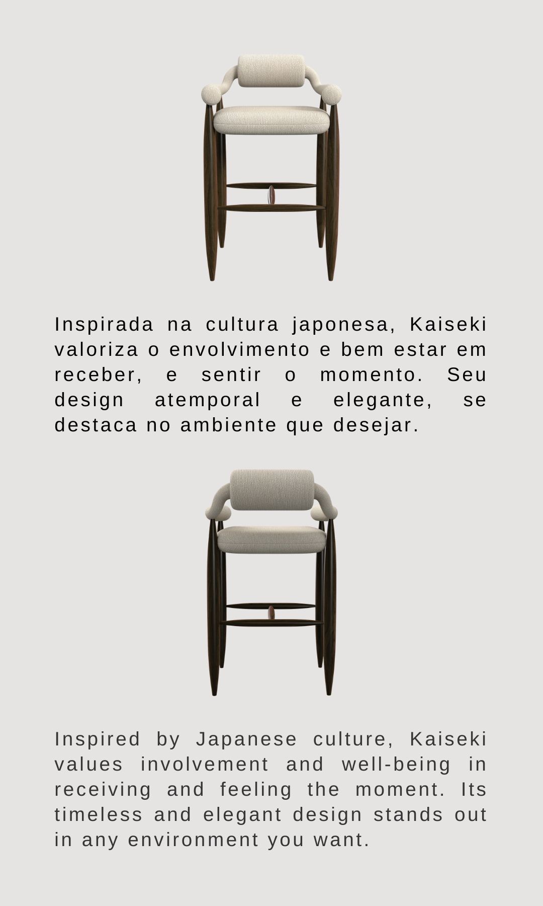 Inspirada na cultura japonesa, Kaiseki valoriza o envolvimento e bem estar em receber, e sentir o momento. Seu design atemporal e elegante, se destaca no ambiente que desejar.
