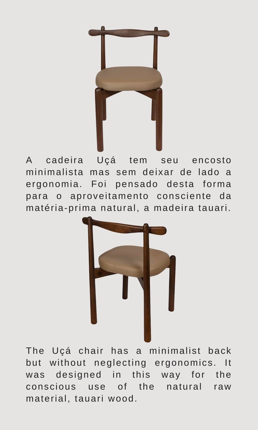 The Uçá chair has a minimalist back but without neglecting ergonomics. It was designed in this way for the conscious use of the natural raw material, tauari wood.