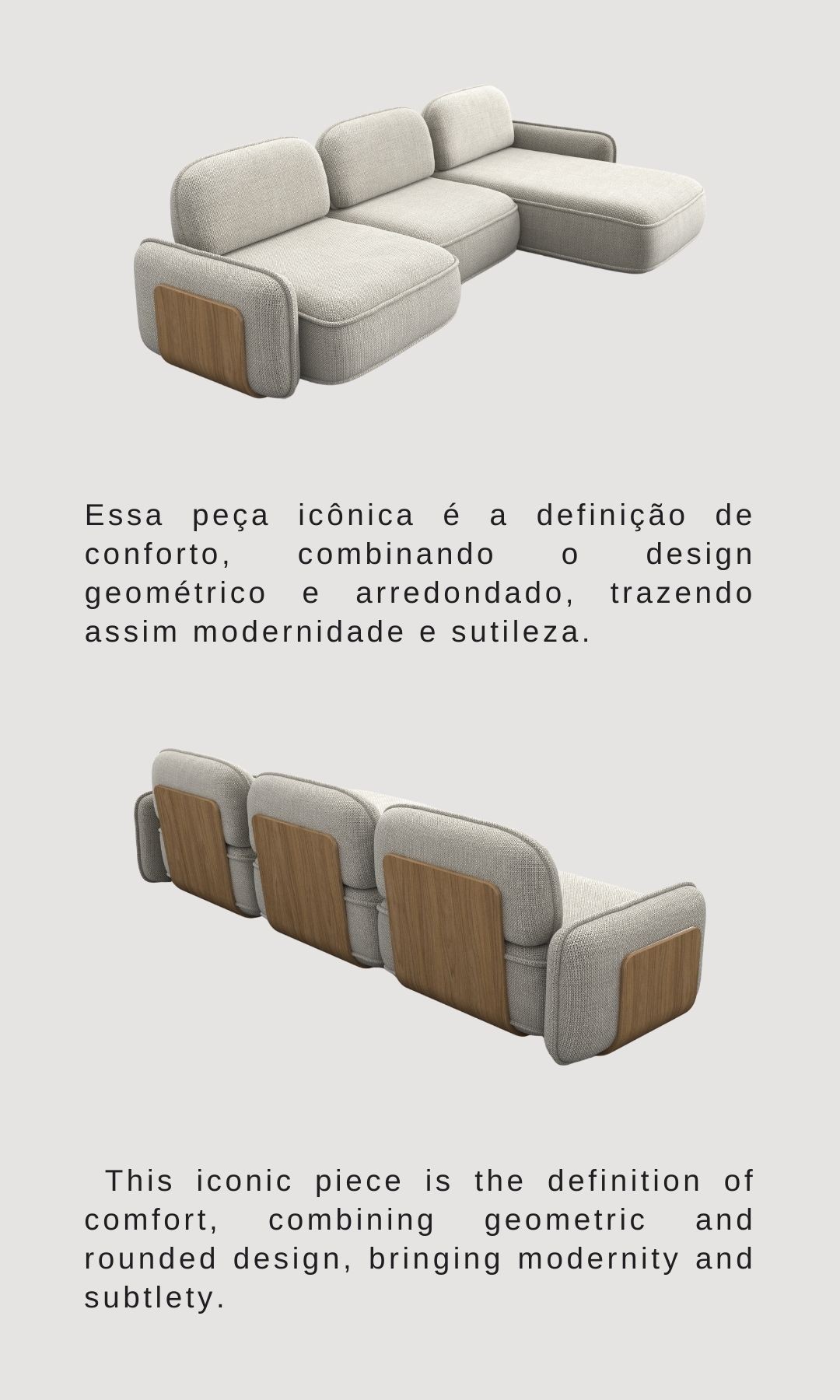 Essa peça icônica é a definição de conforto, combinando o design geométrico e arredondado, trazendo assim modernidade e sutileza. This iconic piece is the definition of comfort, combining geometric and rounded design, bringing modernity and subtlety.