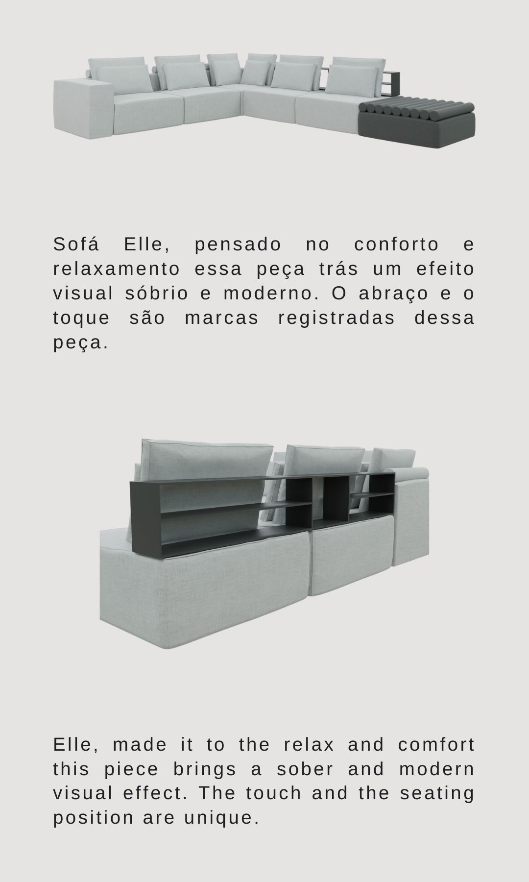 Sofá Elle, pensado no conforto e relaxamento essa peça trás um efeito visual sóbrio e moderno. O abraço e o toque são marcas registradas dessa peça.