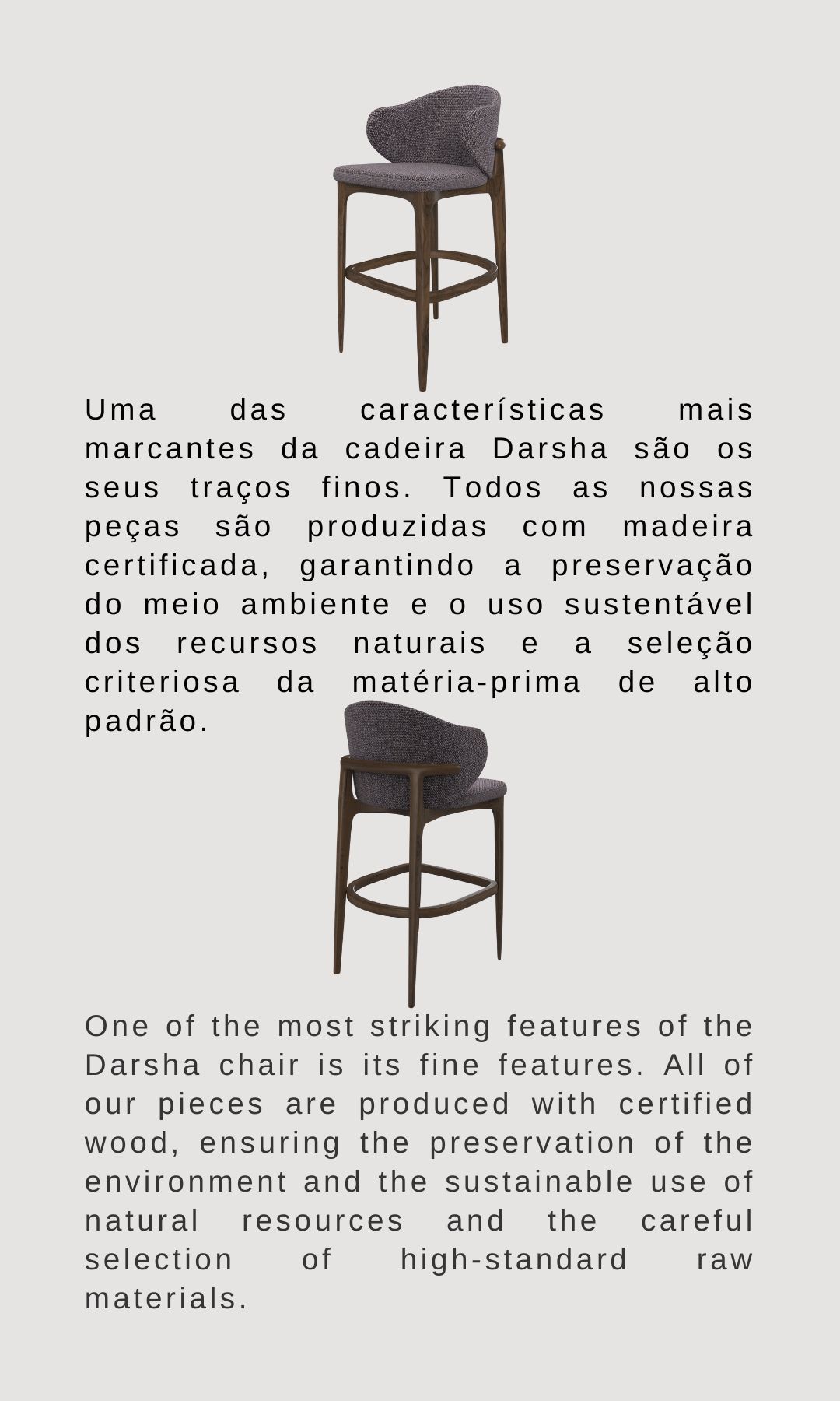 Uma das características mais marcantes da cadeira Darsha são os seus traços finos.