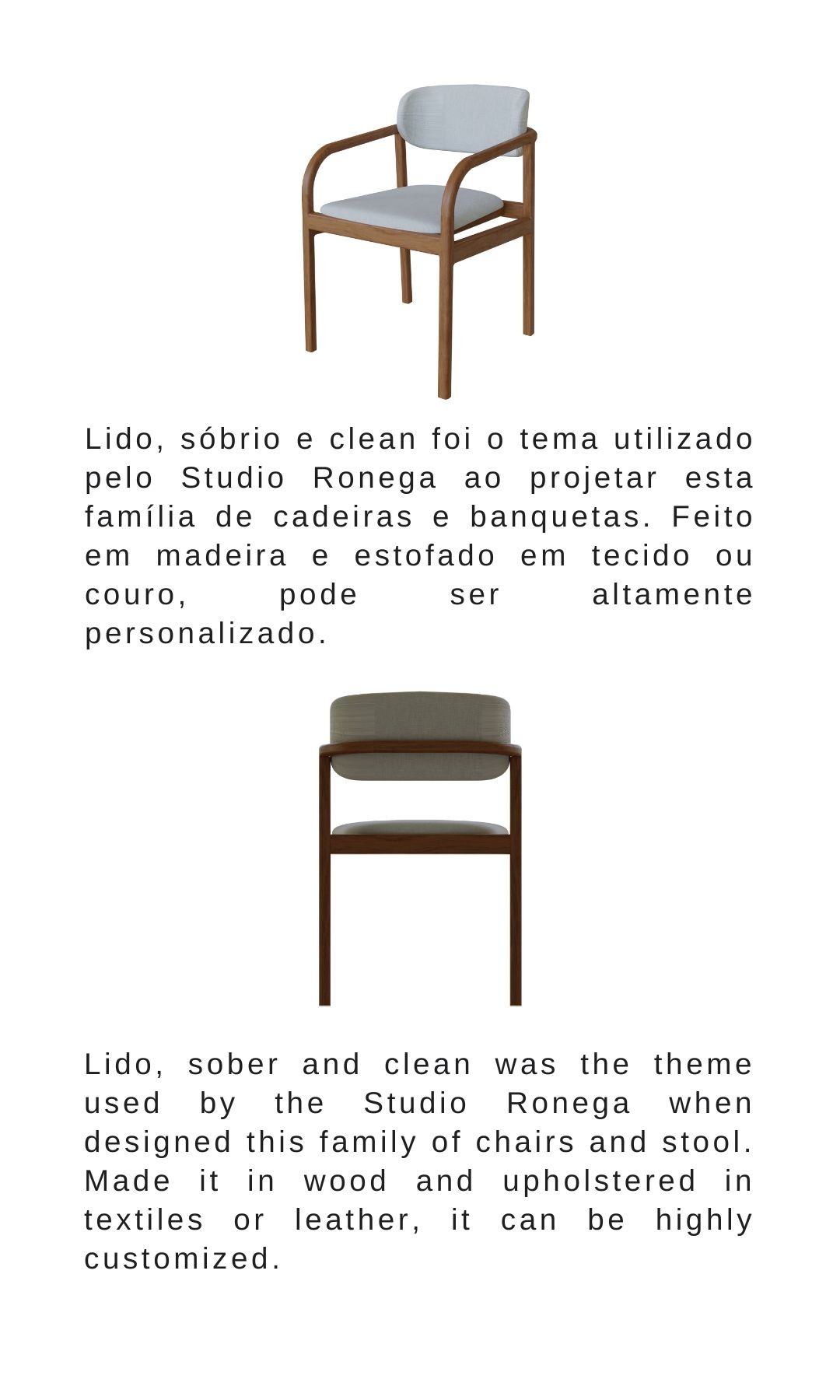 Lido, sóbrio e clean foi o tema utilizado pelo Studio Ronega ao projetar esta família de cadeiras e banquetas.