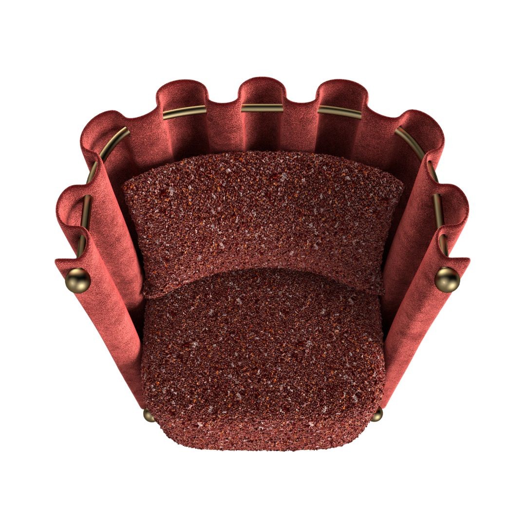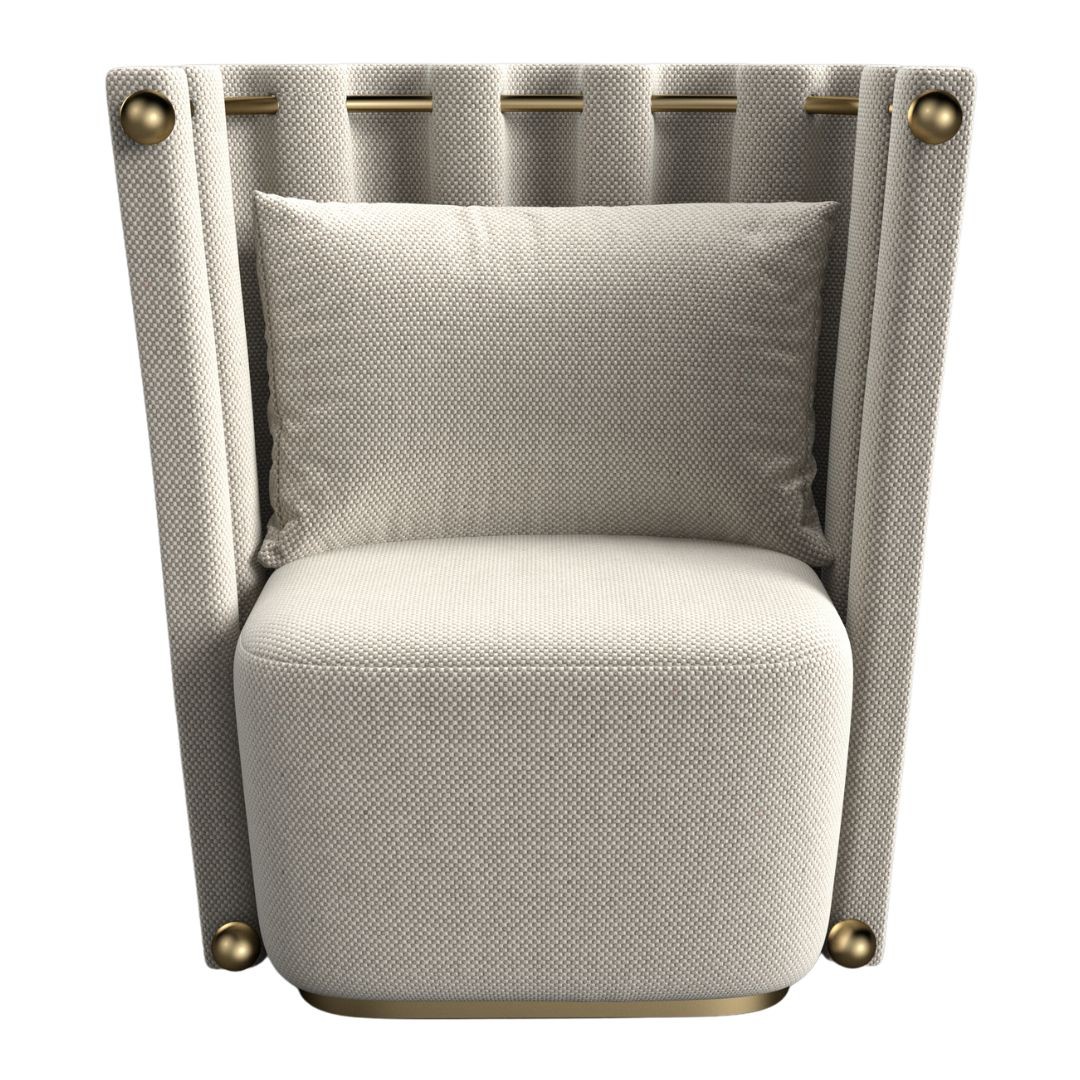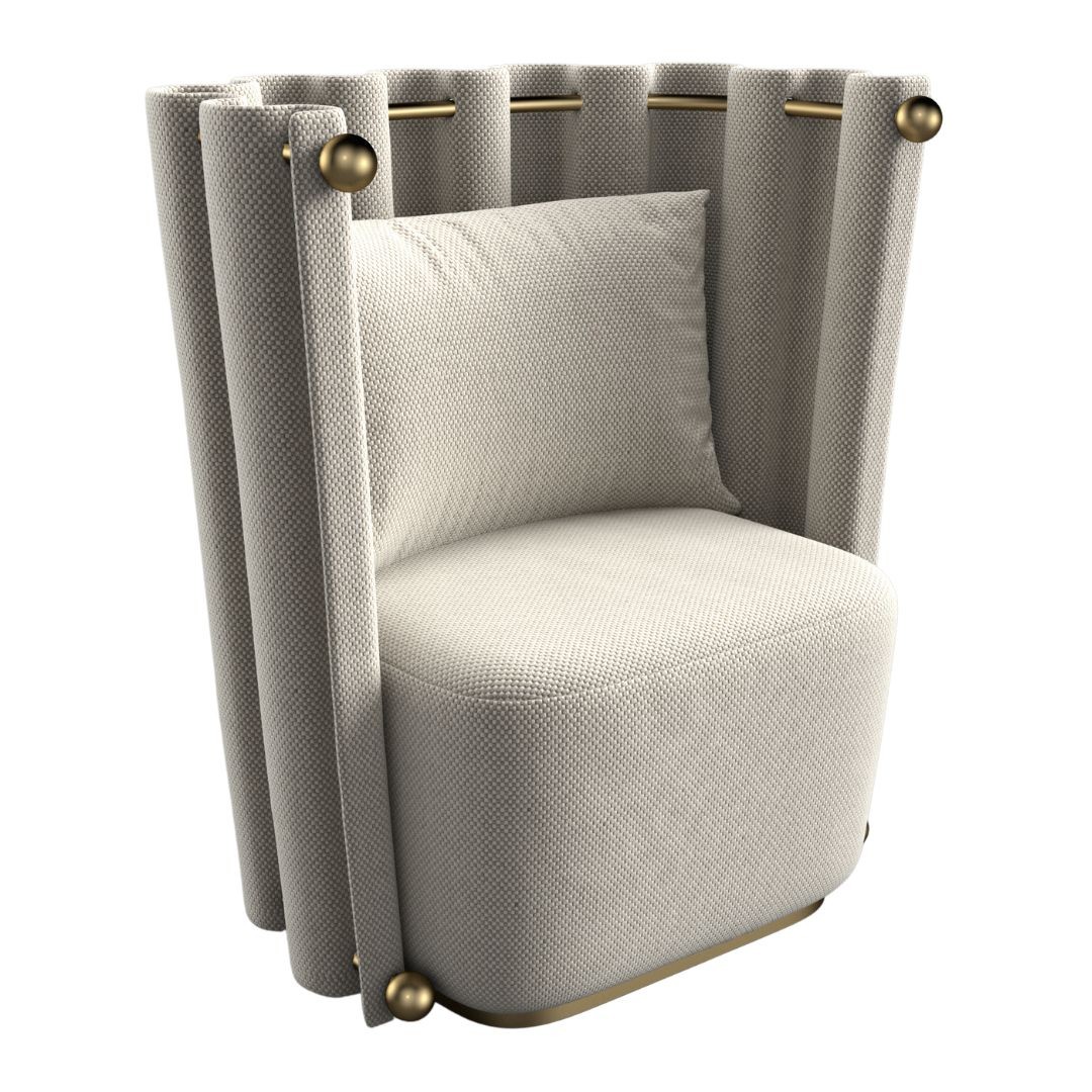 And there it is, “THE” chair that symbolizes the actor finishing a play in a crowded theater. Visiting a client I came across velvet theater curtains, and this reminded me of countless experiences I had and how this always touched me, the surprise, the enchantment about something, the opening of curtains! An armchair with solid volume, striking details, a statement piece with a high back in the form of a rigid curtain that allows you to hide in the piece, forming a cocoon for whoever sits on it!