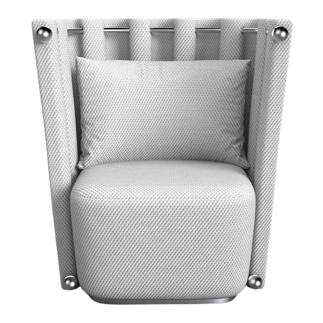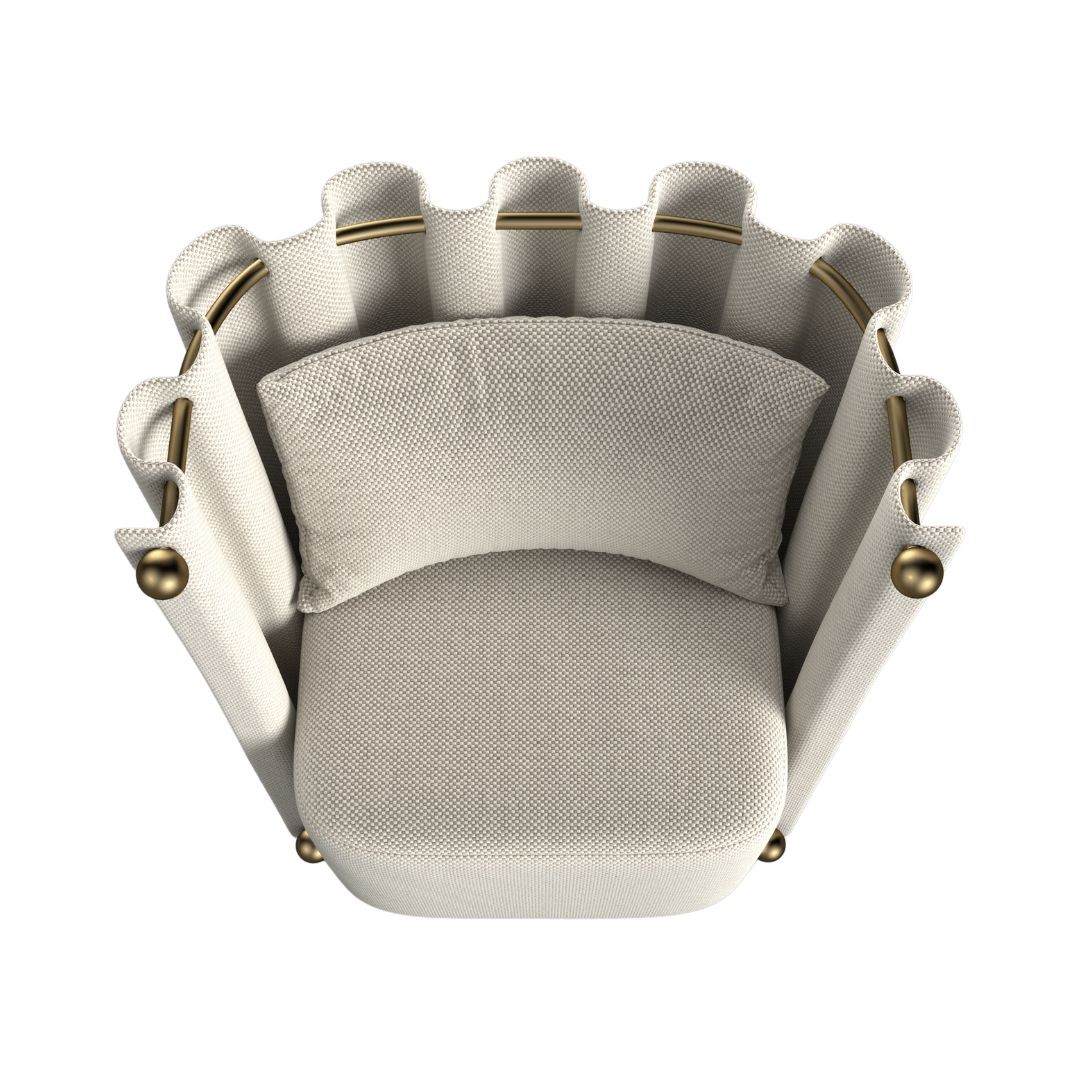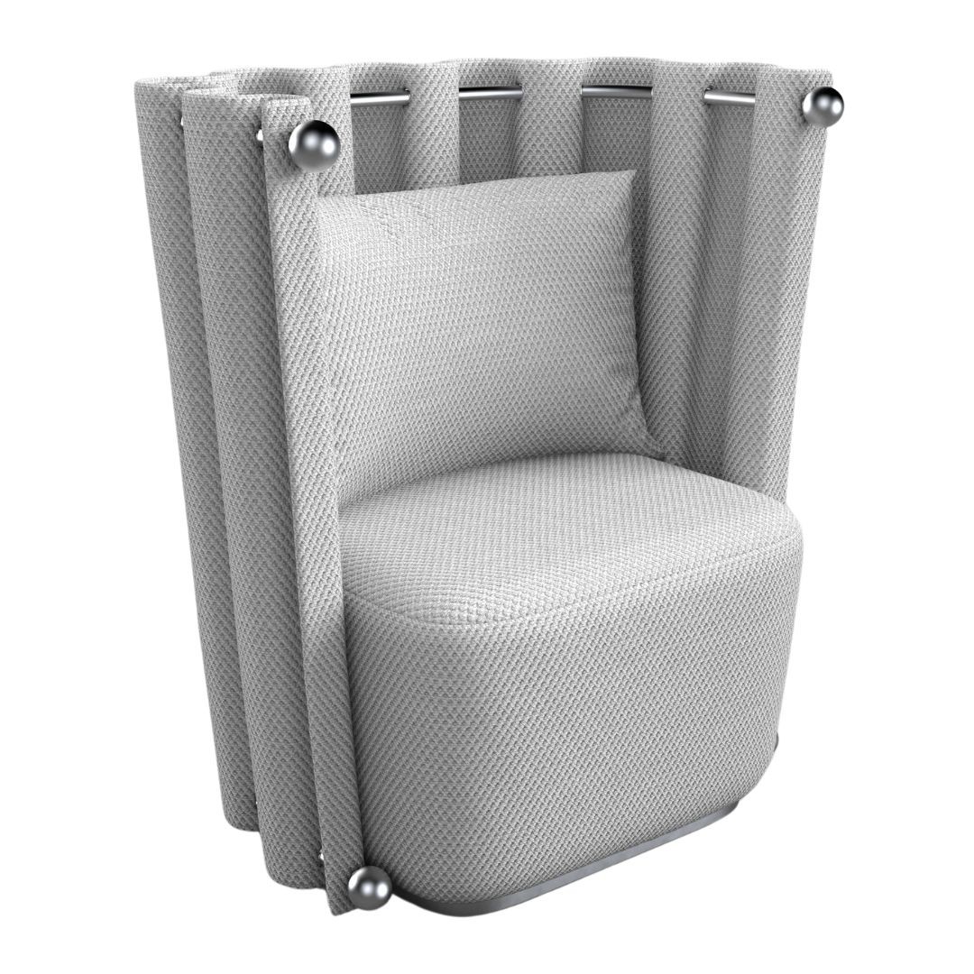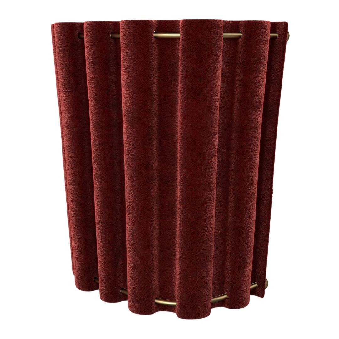 And there it is, “THE” chair that symbolizes the actor finishing a play in a crowded theater. Visiting a client I came across velvet theater curtains, and this reminded me of countless experiences I had and how this always touched me, the surprise, the enchantment about something, the opening of curtains! An armchair with solid volume, striking details, a statement piece with a high back in the form of a rigid curtain that allows you to hide in the piece, forming a cocoon for whoever sits on it!